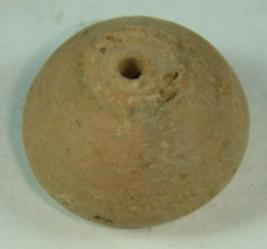 | Description / विवरण | Perforated terracotta bead having rough surface with circular striation lines, betel nut in shape. |