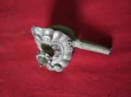 | Description / विवरण | Foot ornament; Chutki of oval shape with curved rim and floral pattern embossed. Dome type structure is embossed in the center. A metallic thick cover is coming out of one side. |