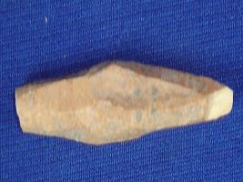 | Description / विवरण | Bone pin with pointed ends having ridges on the body. One side tip is broken and another side part flaked off. |
