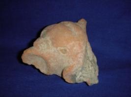 | Description / विवरण | Terracotta animal head of an elephant whose eyes and ears are prominent, right ear is partly broken and trunk is missing. |