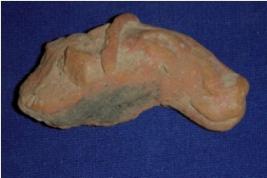 | Description / विवरण | Terracotta animal head of a horse, eyes, mouth and ears are prominent. A strap on the mouth is visible. |