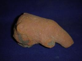 | Description / विवरण | Terracotta animal head of an elephant with prominent trunk, tusk, eyes and ears are prominent. There is a hole may to fix the head with the body. |