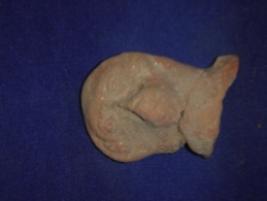 | Description / विवरण | Terracotta animal head of monkey. The jaw is prominent and its right side is mutilated. The head was in two parts but restored. |