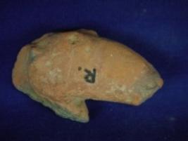 | Description / विवरण | Terracotta animal head, probably of a horse. The eyes are marked with incised holes. The strap on the left side is visible. |