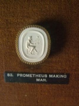 | Description / विवरण | An Etruscan scarab. It shows Prometheus making man, he is sitting, and a drape cloth is also seen over his body, in profile. The skeleton in front posture. A thin high relief border. Oval shape. Framed. Fine relief work in POP, small cast from British Museum. |