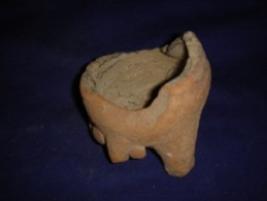 | Description / विवरण | Terracotta animal shaped vessel, with three stands. The upper part of the vessel is broken. |