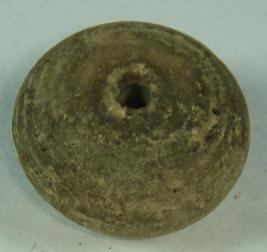 | Description / विवरण | Perforated terracotta bead having bi- convex shape, having close concentric circles. |