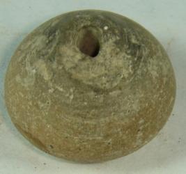 | Description / विवरण | Perforated terracotta bead having pot like shape, with depression at the top and striation lines on the base. |