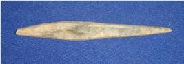 | Description / विवरण | Bone pin, with one end broken having flat body and ridges on the surface. Earthly incrustation all over. |