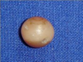 | Description / विवरण | Spherical carnelian stone bead with a perforated hole in the centre. |