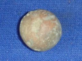 | Description / विवरण | Plain, spherical, tiny terracotta ball probably used as a sling ball. It is bicoloured - red and grey. It is partially flaked off. |