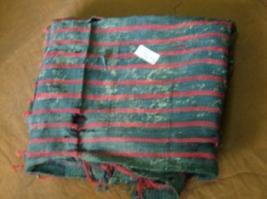 | Description / विवरण | It is a cotton cloth piece which is having red coloured strips in horizontal pattern on dark blue background. Its yarns are coming out. badly, also it is split into three parts. |