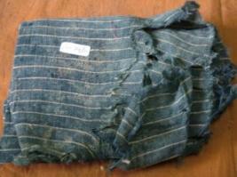 | Description / विवरण | It is a cotton cloth piece which is having white coloured stripes on dark blue coloured background. It is torned up badly. |