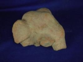 | Description / विवरण | Head of a terracotta elephant. Its trunk, tusk and left ear is missing, only right ear are prominent. Rest part of the figure is missing. |