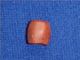 | Description / विवरण | Cylindrical shaped stone bead of maroon colour, with smooth surface with a perforated hole in the centre. |