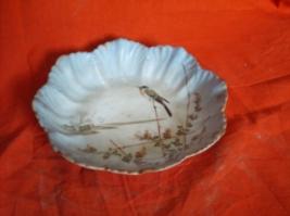 | Description / विवरण | Saucer with scalloped edge, light blue and gold, bird and seascape in the centre. |