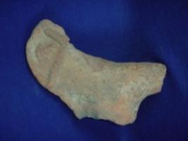 | Description / विवरण | Fragment of a terracotta animal figurine, probably the neck and front body part of a horse. The head, fore limbs and the rest part of the body is missing. The mane and the rein of the horse is partially seen. |