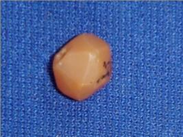 | Description / विवरण | Multifaceted carnelian stone bead with smooth surface. It has a perforated hole in the centre. |