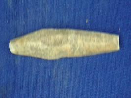 | Description / विवरण | Bone point with broken both ends having flat body with ridges. Earthly incrustation all over. |