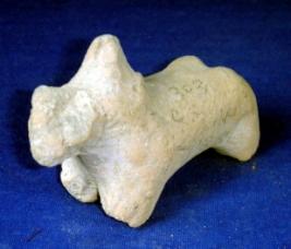 | Description / विवरण | Terracotta animal figurine of humped bull, all the four limbs are half-broken, hump is prominent, facial features are mutilated. |