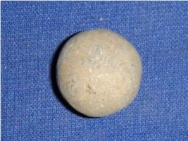 | Description / विवरण | Plain, small terracotta ball of spherical shape. It is semi fine and probably used as a sling ball. One side is slightly chipped off. |