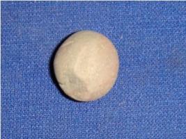 | Description / विवरण | Plain, tiny terracotta ball of spherical shape. It is semi fine and probably used as a sling ball. One side is slightly chipped off. |