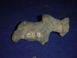 | Description / विवरण | Terracotta animal figurine, probably humped bull. The limbs of the figurine are broken. The ears of the bull are broken and pinching nose has hole on each side. |
