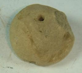 | Description / विवरण | Perforated terracotta bead, betel nut in shape with slight depression at the centre of the body. Part of the body is broken. |