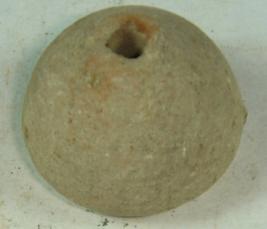 | Description / विवरण | Perforated terracotta bead, betel nut in shape, with a slight depression at the centre of the body and striation marks are seen on the body. |