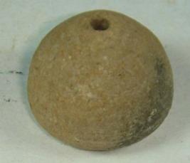 | Description / विवरण | Perforated terracotta betel nut shaped bead with a slight depression in the centre of the base, concentric circles are prominent on the body. |