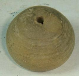 | Description / विवरण | Perforated terracotta betel nut bead with a slight depression in the centre of base. Some striation marks are seen on the body. |