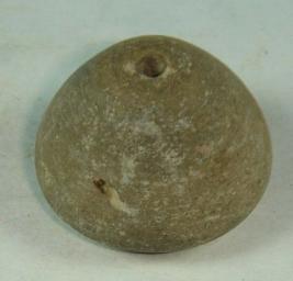 | Description / विवरण | Perforated terracotta betel nut bead, with a slight depression in the centre of the base. Concentric circles are slightly visible. |