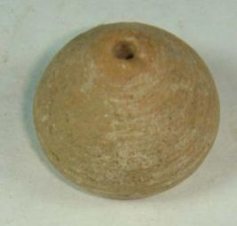 | Description / विवरण | Perforated terracotta betel nut shaped bead, with a small depression on the body, concentric circles are seen on the body. |