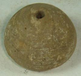 | Description / विवरण | Perforated terracotta betel nut shaped bead with a slight depression on the centre of the base, some close concentric circles are also seen on the body. |