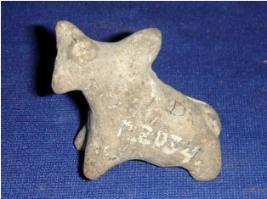 | Description / विवरण | Terracotta figurine of a humped bull, left horn and hind limbs are missing. It is crudely finished. The hump is very prominent. |