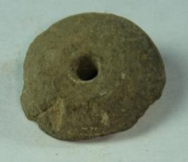 | Description / विवरण | Fragment of terracotta bead only the base is visible, with rough surfaces. |