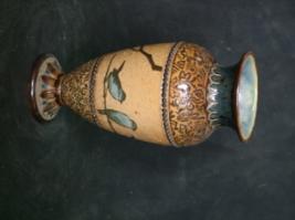 | Description / विवरण | Vase by Miss F.E. Barlow, painted birds on a branch in the bowl and relief work in brown, blue and light brown colour. |