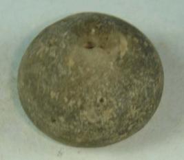 | Description / विवरण | Ill fired terracotta perforated betel nut shaped bead with deep depression on the centre of the base. |