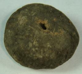 | Description / विवरण | Simple flat, circular terracotta bead with perforated hole. The surface is peeling off. |