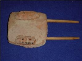 | Description / विवरण | Fragment of a toy cart with two inserted bamboo sticks to attach it with bull or any other animal. |