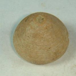 | Description / विवरण | Simple betel nut terracotta bead with perforated hole. |