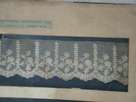 | Description / विवरण | Specimen of Nottingham machine made lace Dentelle Orientale , exhibited on a card-board, given by the Corporation of Nottingham Art Museum Committee. |
