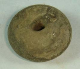 | Description / विवरण | Simple flat circular terracotta bead with perforated hole in the centre. One part of body is peeling off. |