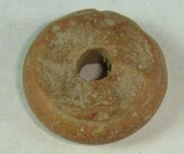 | Description / विवरण | Simple flat terracotta bead with perforated hole, the upper part is broken. |