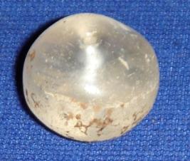 | Description / विवरण | Plain stone bead, bulbous body, with slightly flat top and base and perforated hole at the centre. |