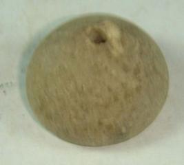 | Description / विवरण | Plain terracotta bead, betel nut in shape with perforated hole. |