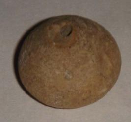 | Description / विवरण | Perforated terracotta bead, betel nut in shape, striation marks on the body and has slight depression at the base. |