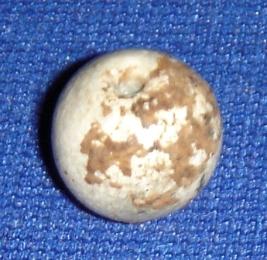 | Description / विवरण | Spherical, perforated stone bead having plain surfaces. |