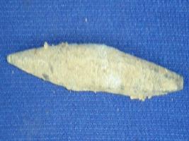 | Description / विवरण | Bone point with flat body and pointed ends. Earthly incrustation is seen all over the body. |
