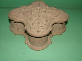 | Description / विवरण | Box, quatre foil shaped. The lid alone is ornamental with carved floral work in relief. |
